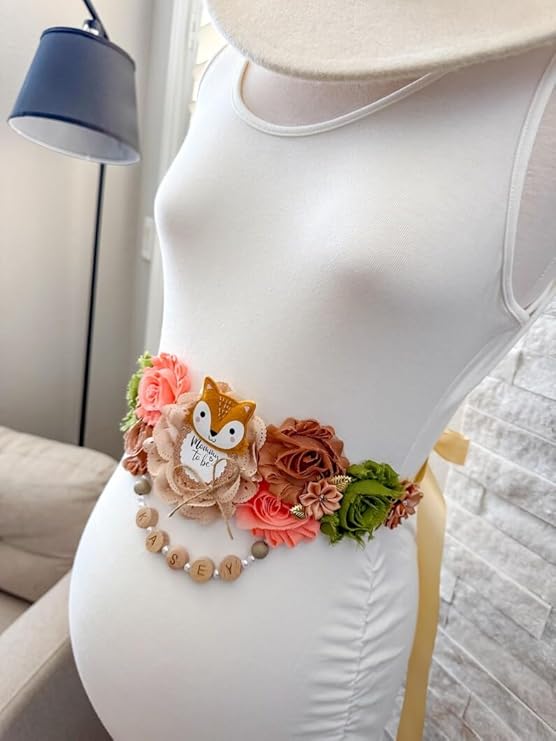 Fox Baby Shower Sash – Mom to Be Maternity Sash with Matching Dad Pin, Woodland Theme Party Accessory