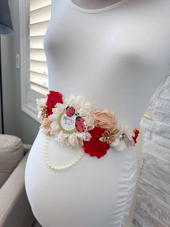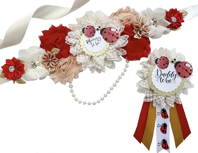 โค๏ธ Includes Matching Dad Pin โ Celebrate both parents with a coordinating โDad to Beโ badge featuring ribbon tails and ladybug prints for extra charm.